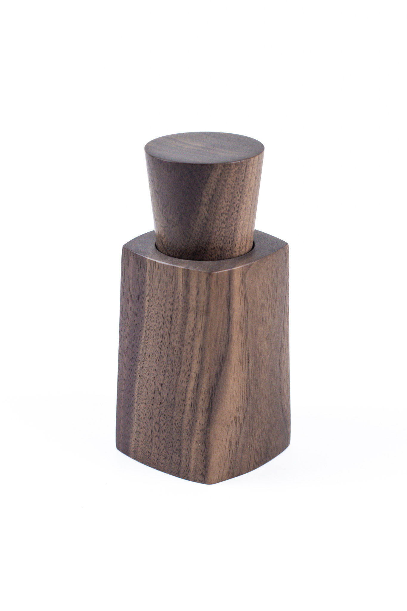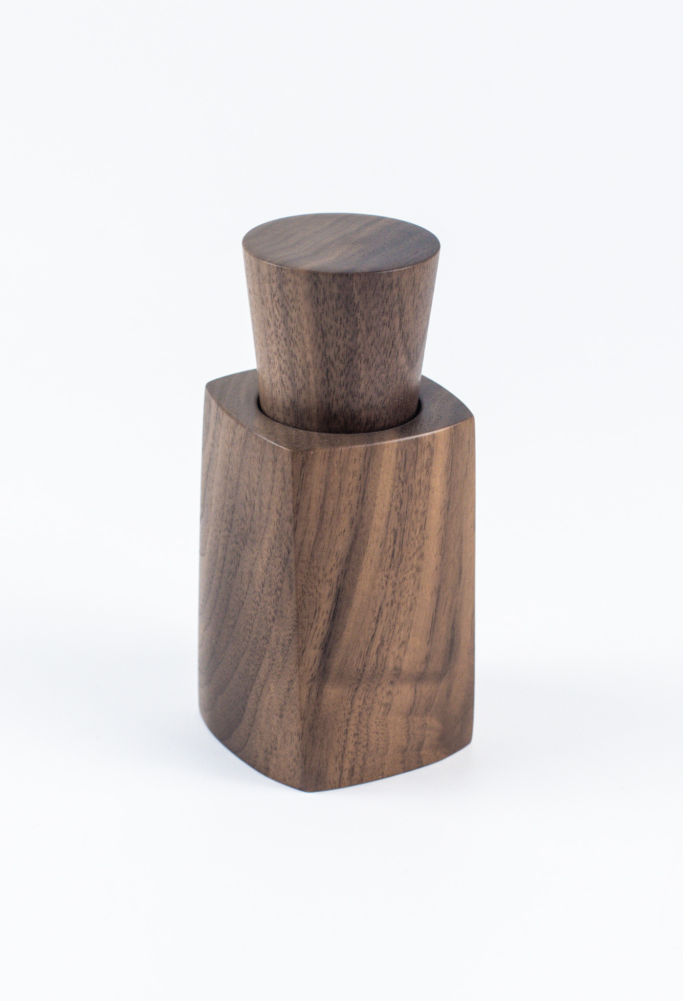 Jede Flacon wird von Hand aus einem Stück Holz gefertigt und glatt geschliffen. Alexander Ortlieb stellt sie im Schwarzwald her, mit großer Sorgfalt für Material, Form und Haptik. Die ausgewogene Proportion verleiht der Mühle Ruhe und Präsenz – ein funktionales Objekt mit zurückhaltender Eleganz.