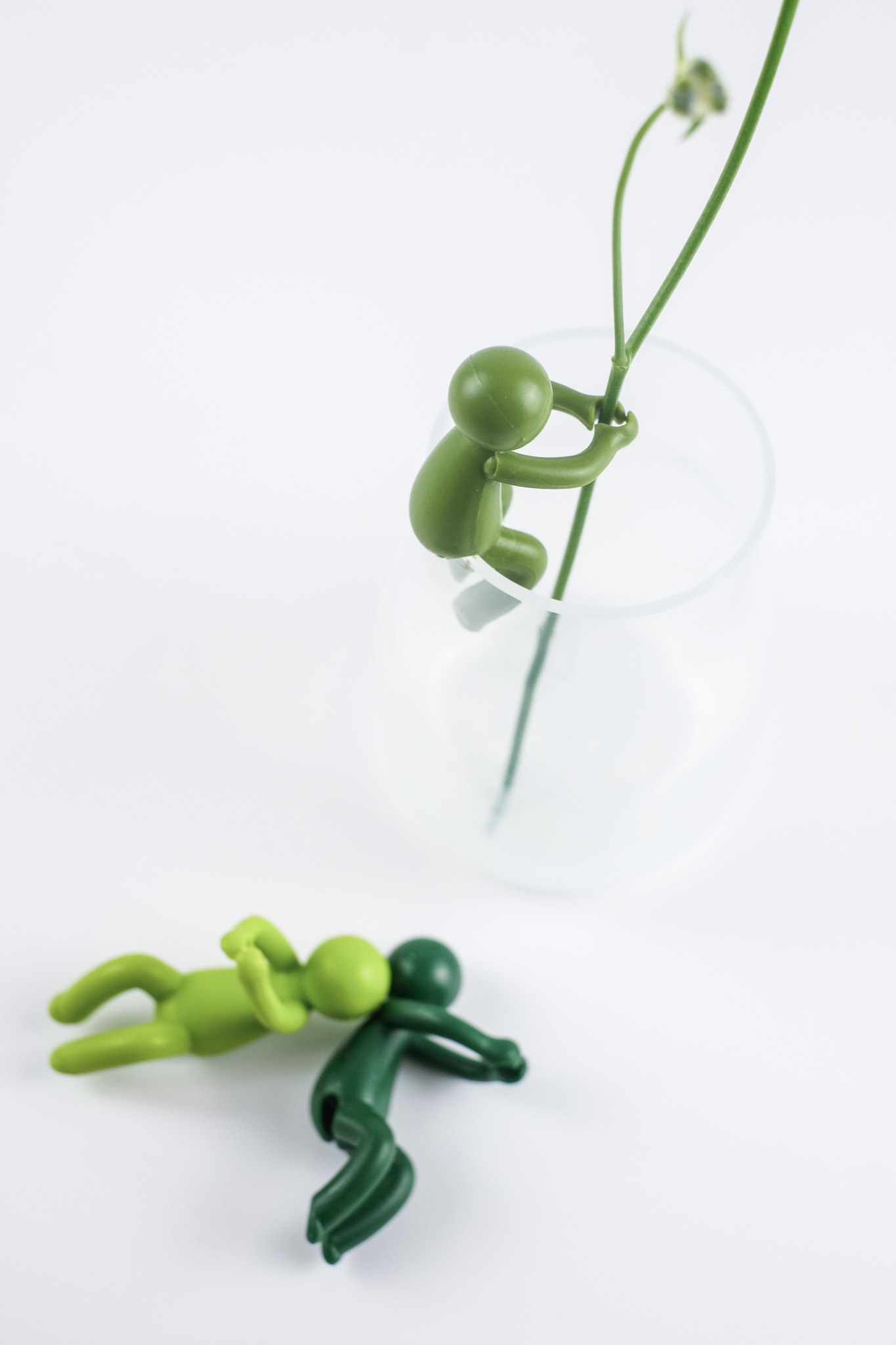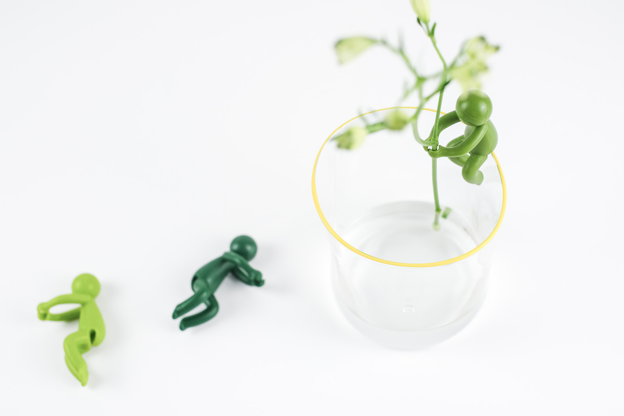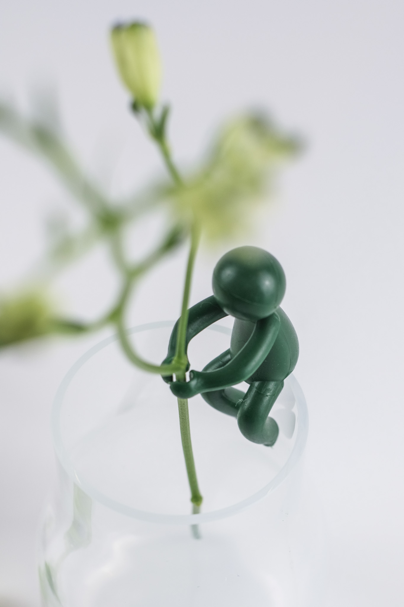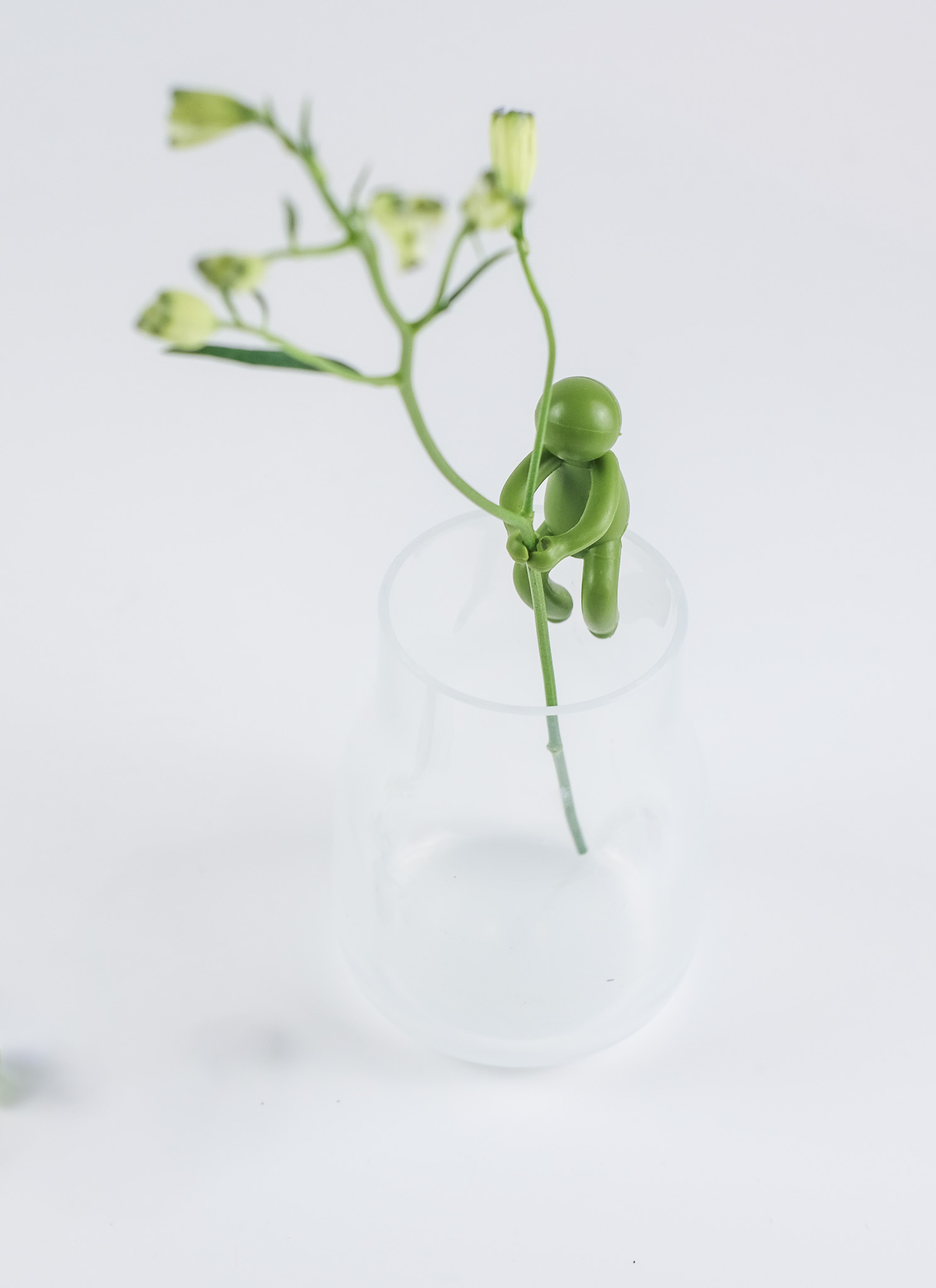 Unsere kleinen grünen Männchen sind die perfekte Stütze für einzelne Blumenstiele oder dünne Zweige. Einfach auf den Rand einer zylindrischen Vase oder eines Glases gesetzt, umarmen sie die Blütenstiele und halten sie elegant in Position.