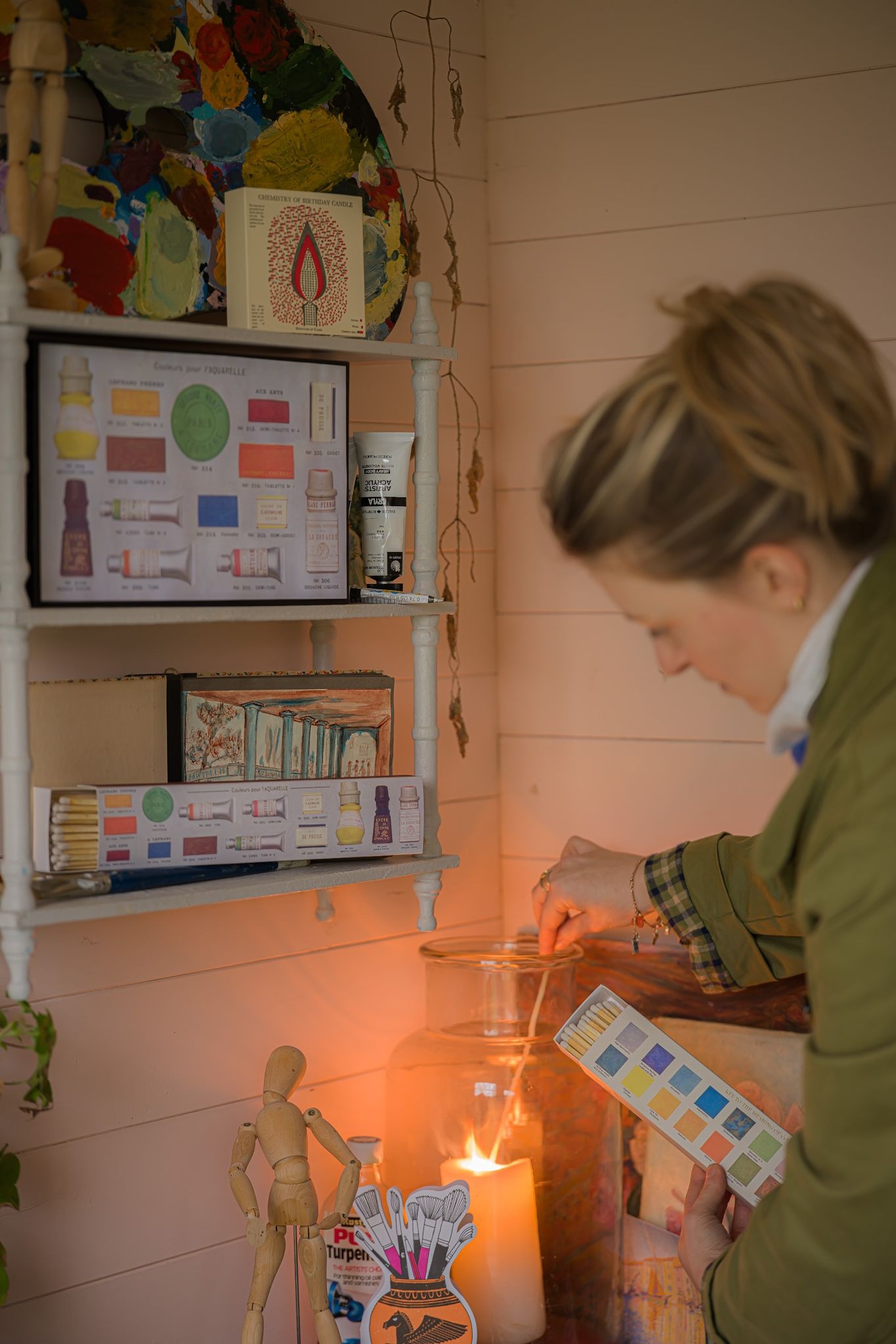 Benutzerkonto anlegenDiese besondere Streichholzschachtel verbindet praktischen Nutzen mit grafischem Charme. Auf der Vorderseite befindet sich eine dekorative Farbtafel mit 16 farbigen Feldern und kurzen Erläuterungen zu ihrer Bedeutung – inspiriert von historischen Farb- und Lehrtafeln. Der Titel „Key to the Meaning of Colour“, in goldener Folie geprägt, verleiht der Schachtel eine elegante, fast bibliophile Anmutung und macht sie zu einem schönen Objekt auf dem Couchtisch, neben dem Kamin oder auf dem Kaminsims.